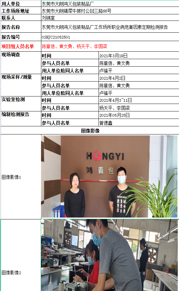 东莞市大朗鸿义包装制品厂工作场所职业病危害因素定期检测报告