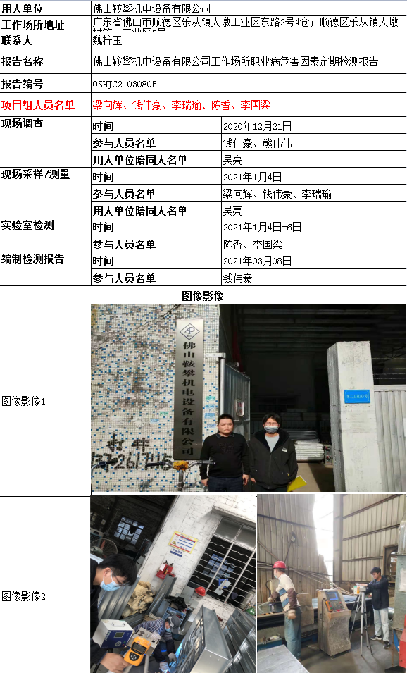 佛山鞍攀机电设备有限公司工作场所职业病危害因素定期检测报告