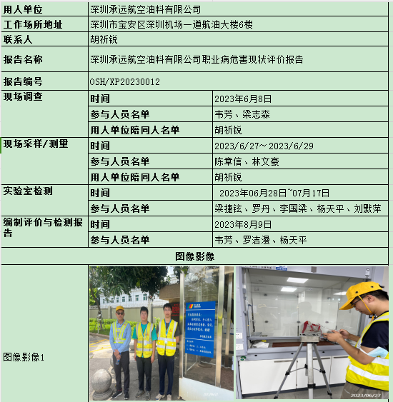 深圳承远航空油料有限公司职业病危害现状评价报告