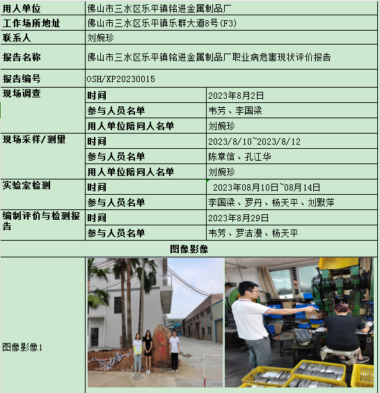佛山市三水区乐平镇铭进金属制品厂职业病危害现状评价报告