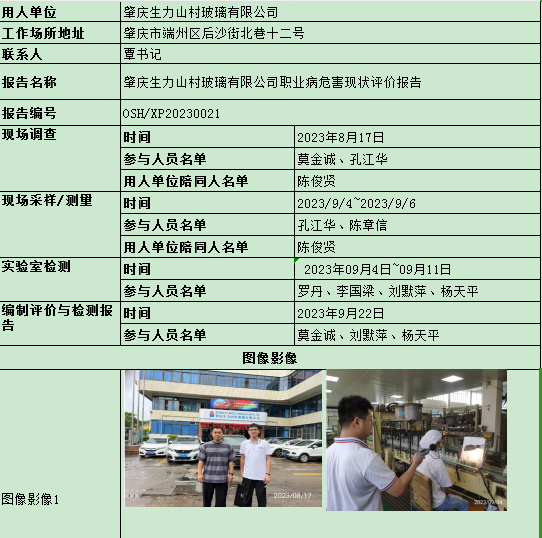 肇庆生力山村玻璃有限公司职业病危害现状评价报告