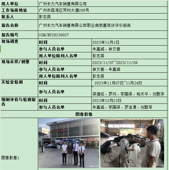 广州长力汽车销售有限公司职业病危害现状评价