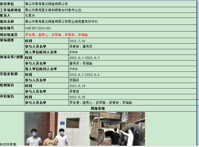 佛山市南海昌达铸造有限公司职业病危害现状评价