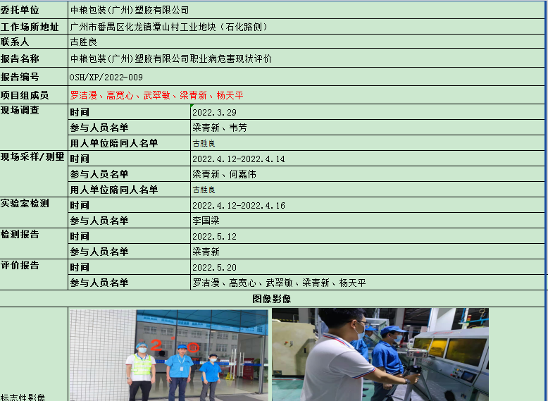 中粮包装(广州)塑胶有限公司职业病危害现状评价
