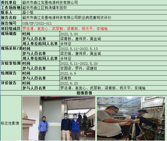 韶关市曲江宏基电源科技有限公司职业病危害现状评价