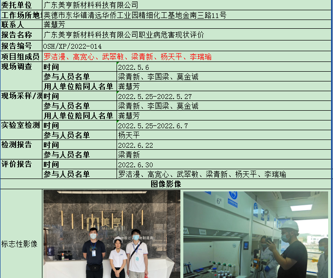 广东美亨新材料科技有限公司职业病危害现状评价