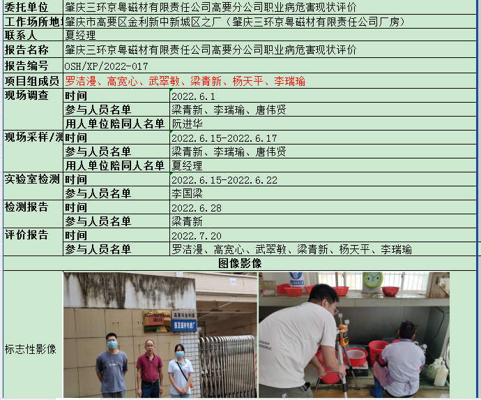 肇庆三环京粤磁材有限责任公司高要分公司职业病危害现状评价