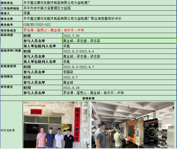 开平嘉达摩托车配件制品有限公司大益电镀厂职业病危害现状评价