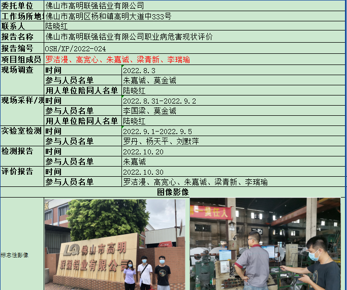 佛山市高明联强铝业有限公司职业病危害现状评价