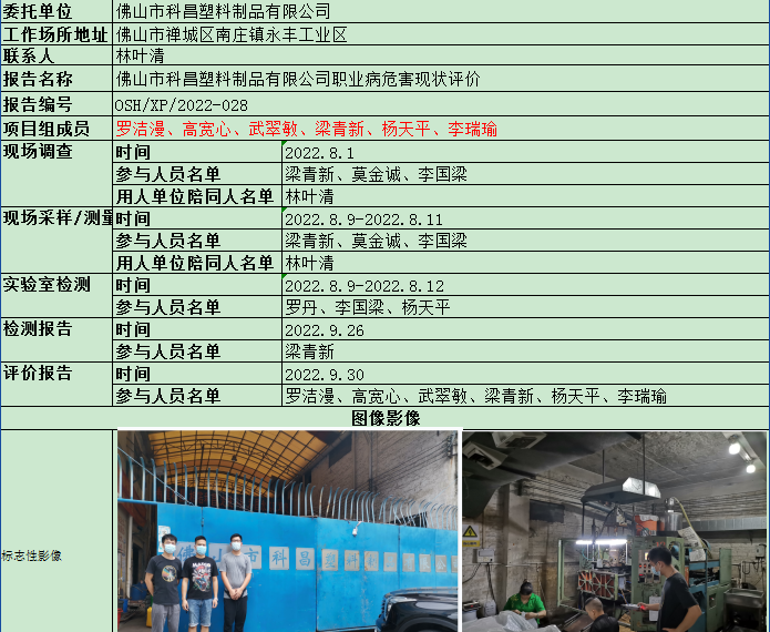 佛山市科昌塑料制品有限公司职业病危害现状评价