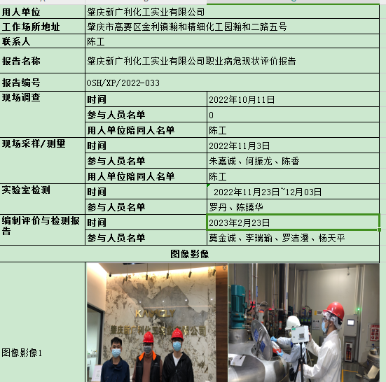 肇庆新广利化工实业有限公司职业病危现状评价报告