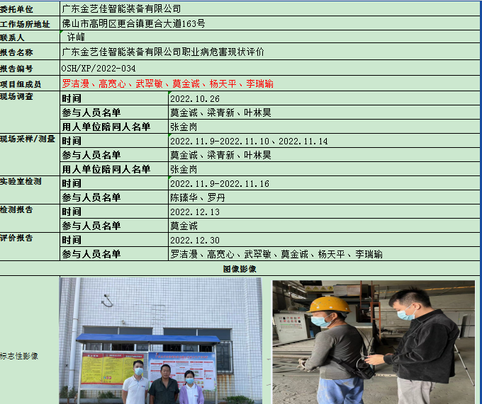 广东金艺佳智能装备有限公司职业病危害现状评价