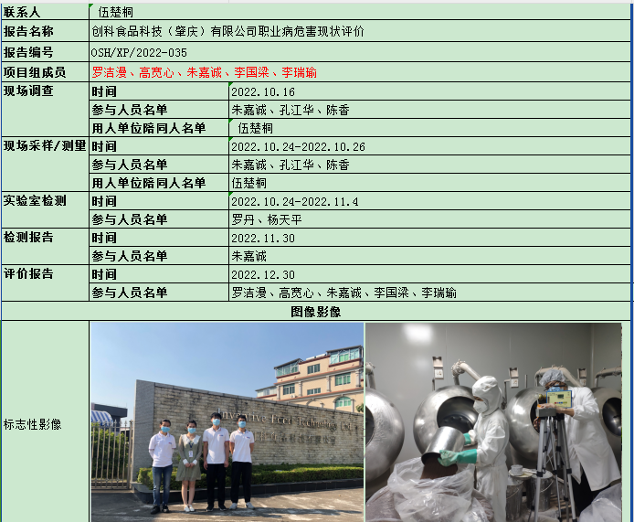 创科食品科技(肇庆)有限公司职业病危害现状评价