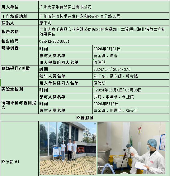 广州大家乐食品实业有限公司9620吨食品加工建设项目职业病危害控制效果评价