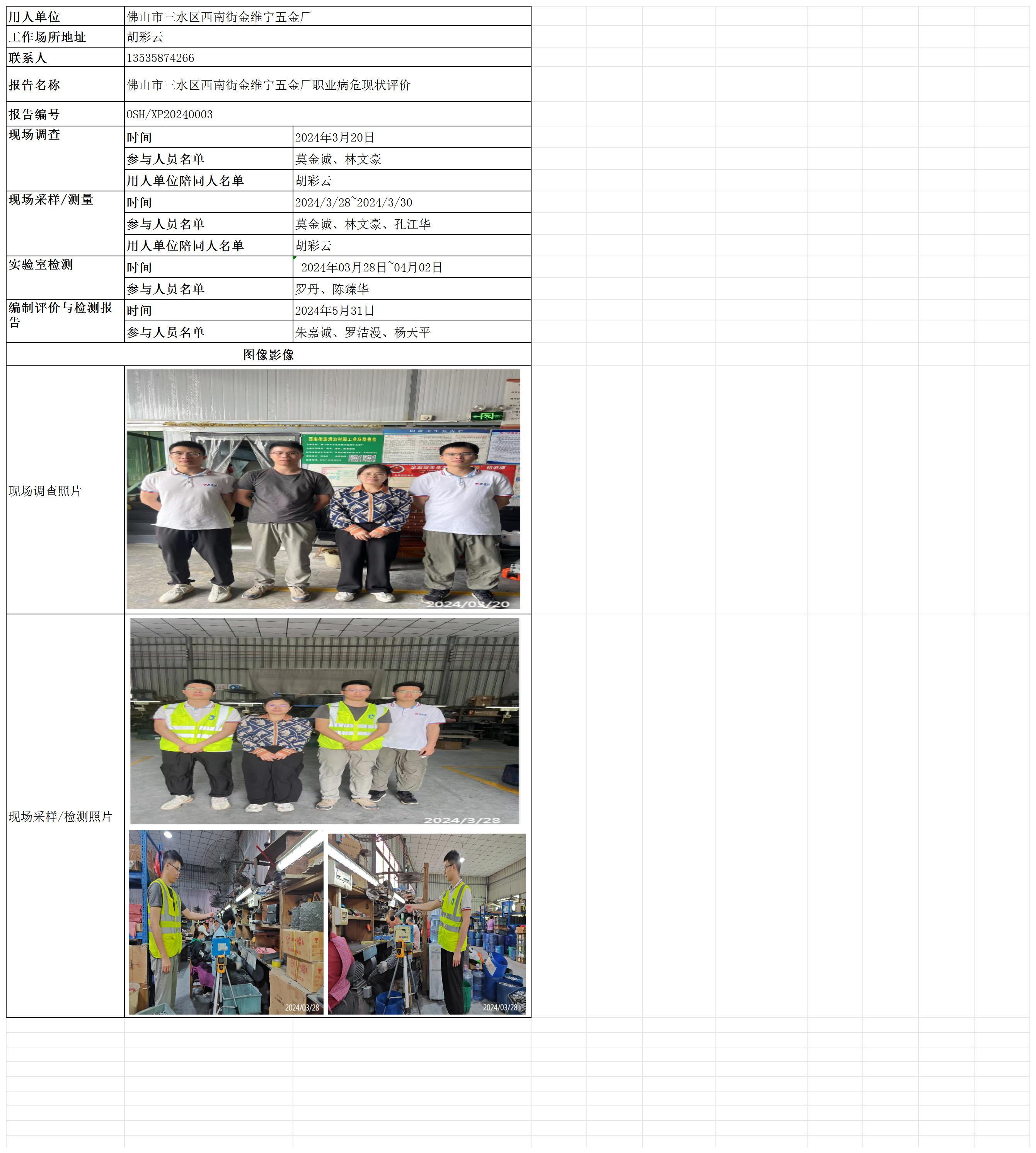 佛山市三水区西南街金维宁五金厂职业病危现状评价
