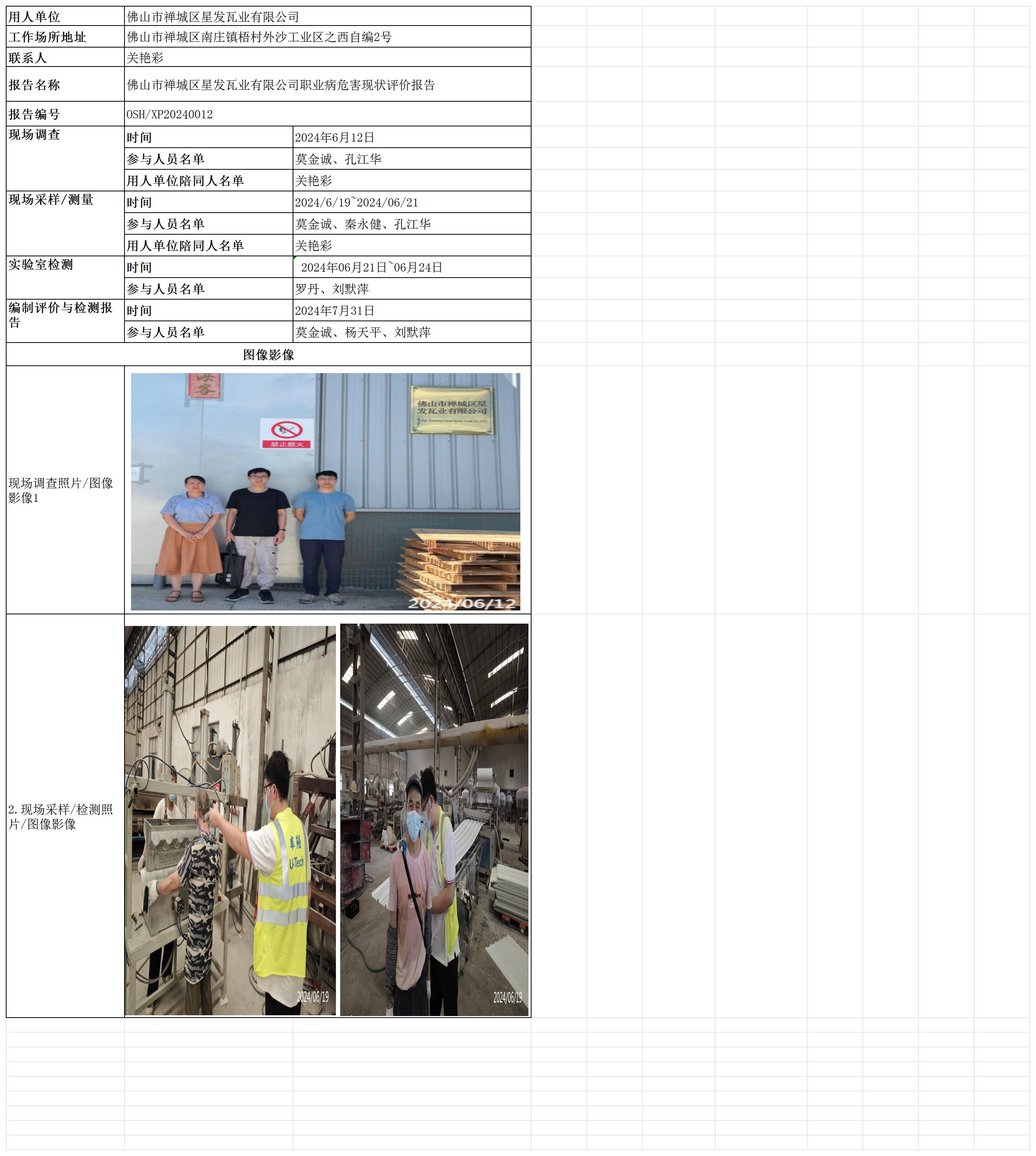 佛山市禅城区星发瓦业有限公司职业病危害现状评价