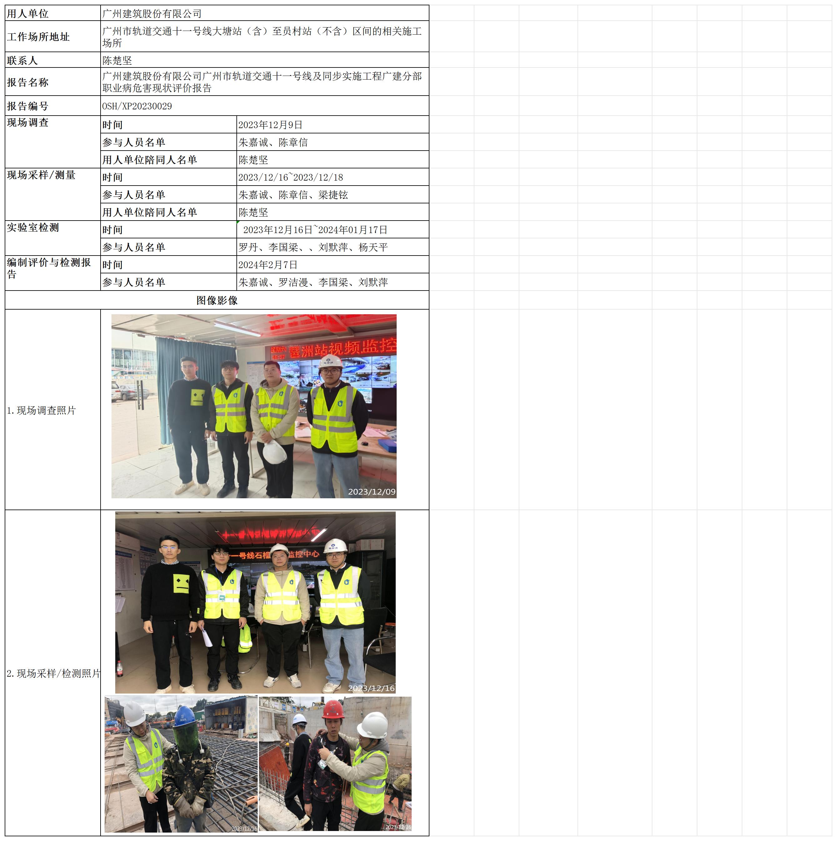 广州建筑股份有限公司广州市轨道交通十一号线及同步实施工程广建分部职业病危害现状评价