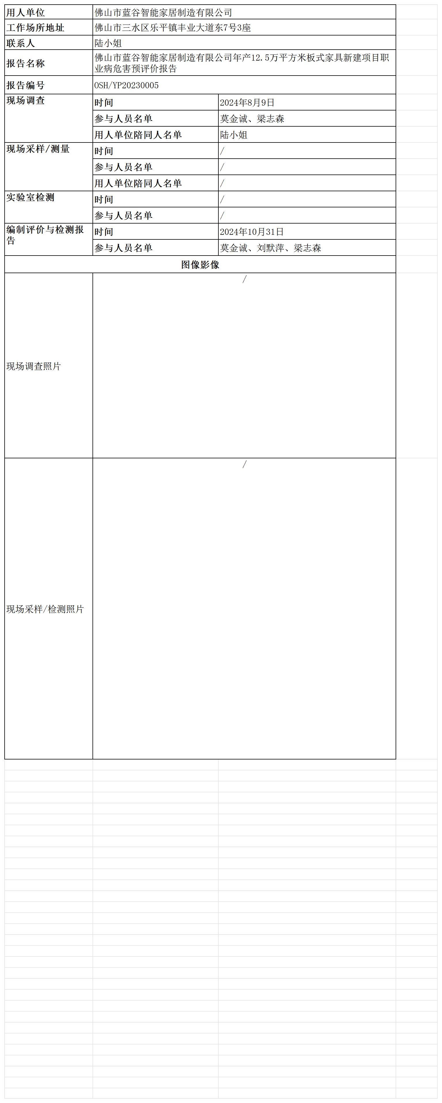 佛山市蓝谷智能家居制造有限公司 年产12.5万平方米板式家具新建项目 职业病危害预评价报告书