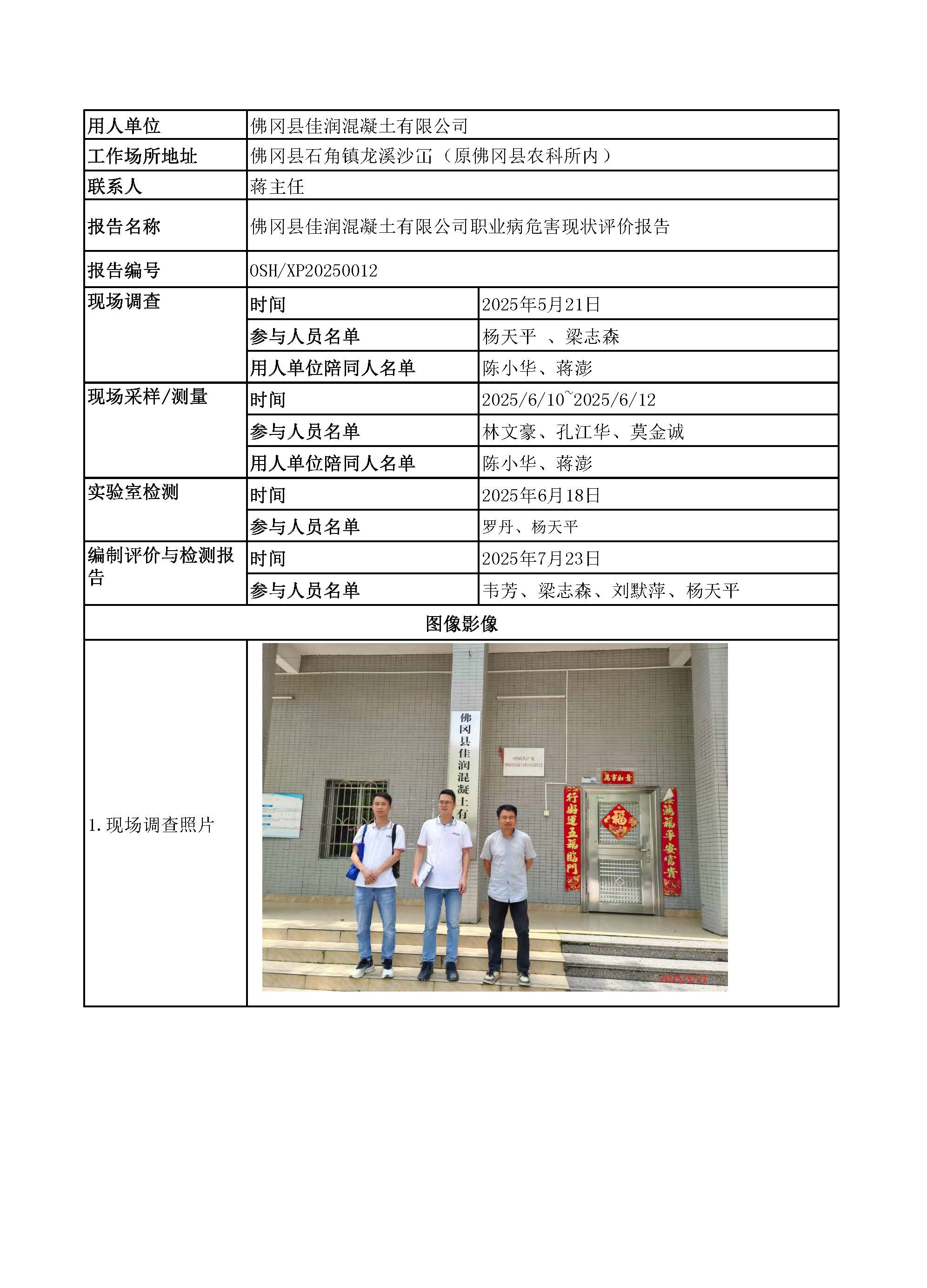 佛冈县佳润混凝土有限公司职业病危害现状评价