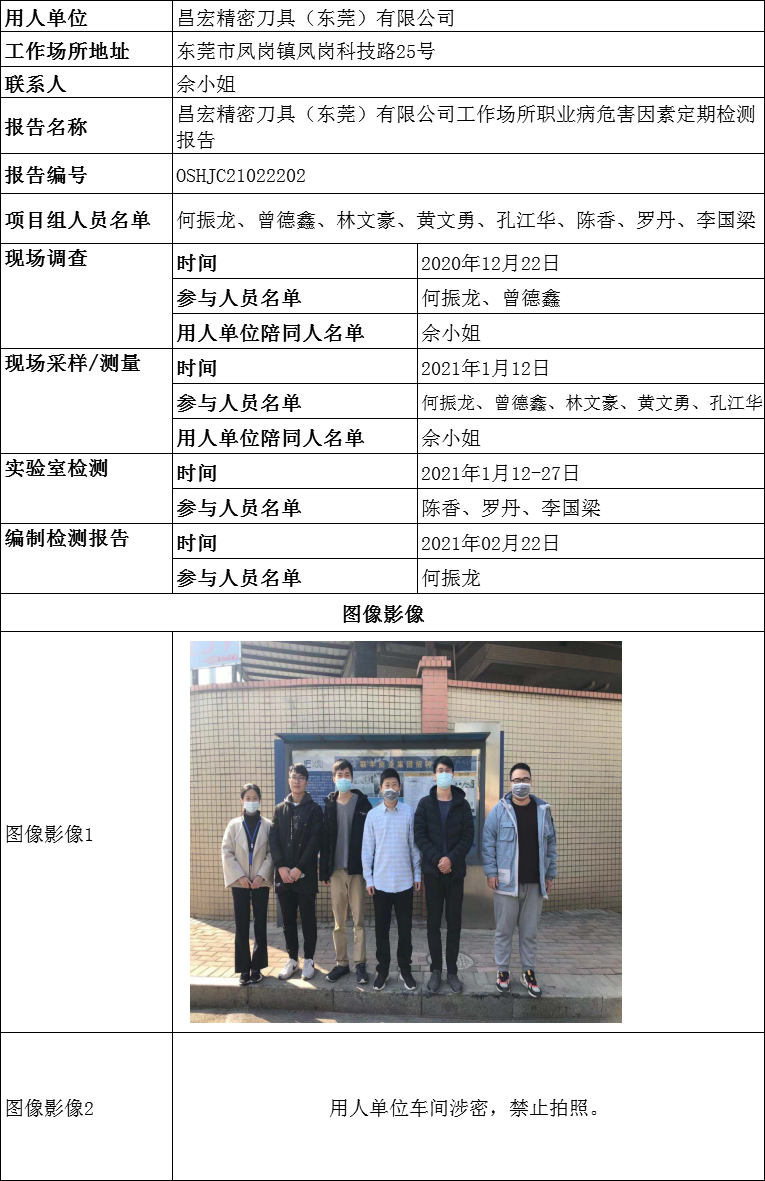 昌宏精密刀具(东莞)有限公司工作场所职业病危害因素定期检测
